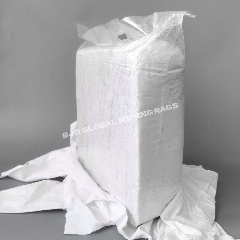ผ้าเช็ดทำความสะอาดอุตสาหกรรมสีขาว ทำจากผ้าเทอร์รี่ฝ้ายรีไซเคิล 100% ผ่านการซักล้างแล้ว ตัดเย็บเป็นผ้าขี้ริ้ว