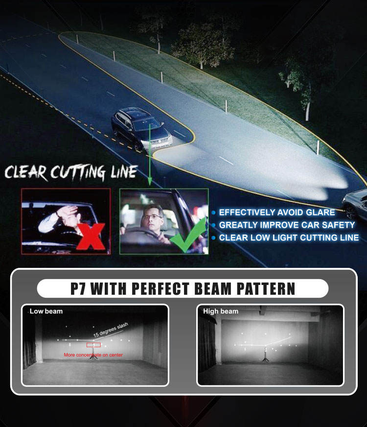ไฟหน้ารถยนต์ Prilight Led รุ่น P7 100W 14500LM หลอดไฟ Led H4 H1 H3 H8 H119005 9006 H7 สำหรับรถยนต์ bmw ซีรีส์ 5 รุ่น E60