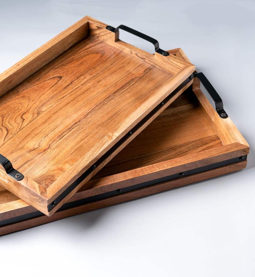 ถาดไม้สีน้ำตาลขนาดใหญ่ ถาดเสิร์ฟทรงสี่เหลี่ยม ถาดเสิร์ฟตกแต่ง วางซ้อนกันได้ ถาดเสิร์ฟขนมหวาน มีจำหน่าย
