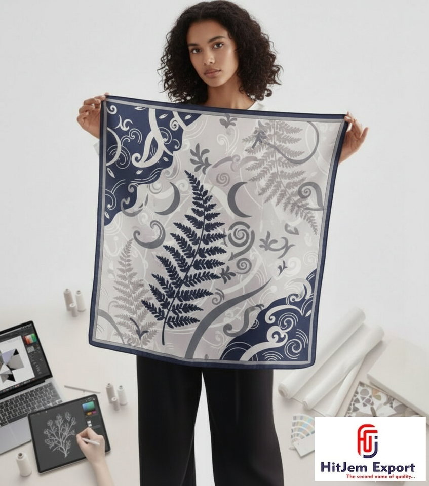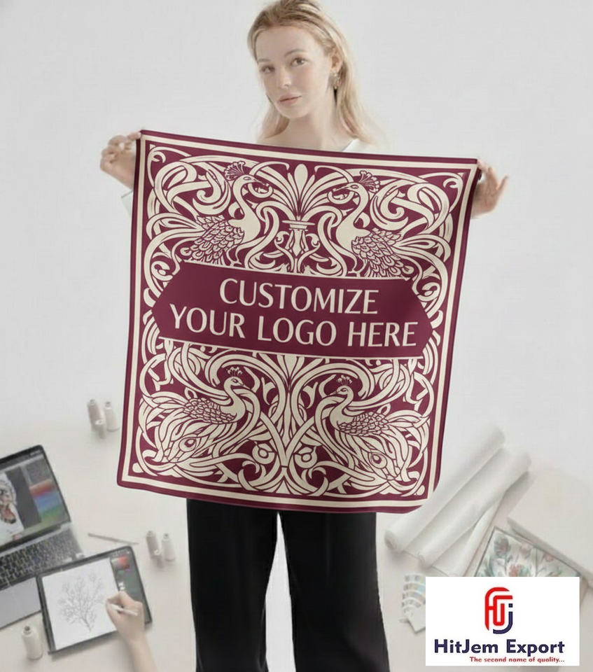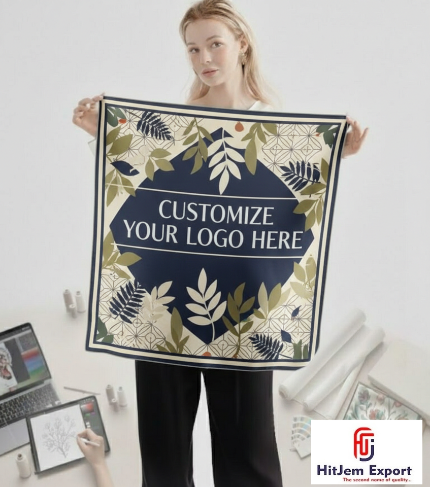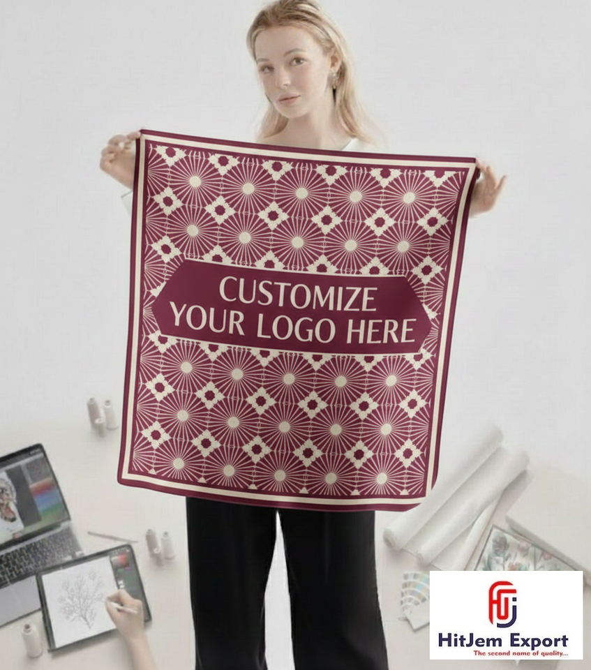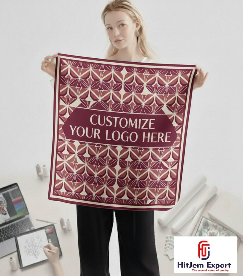 ผ้าพันคอสี่เหลี่ยมพิมพ์ลายตามสั่ง เนื้อผ้าคล้ายผ้าไหม แฟชั่นฮิญาบ ผ้าคลุมศีรษะ ผลิตภัณฑ์สั่งทำพิเศษ รับผลิตแบบ OEM ODM ผู้ผลิตสิ่งทอตามสั่ง