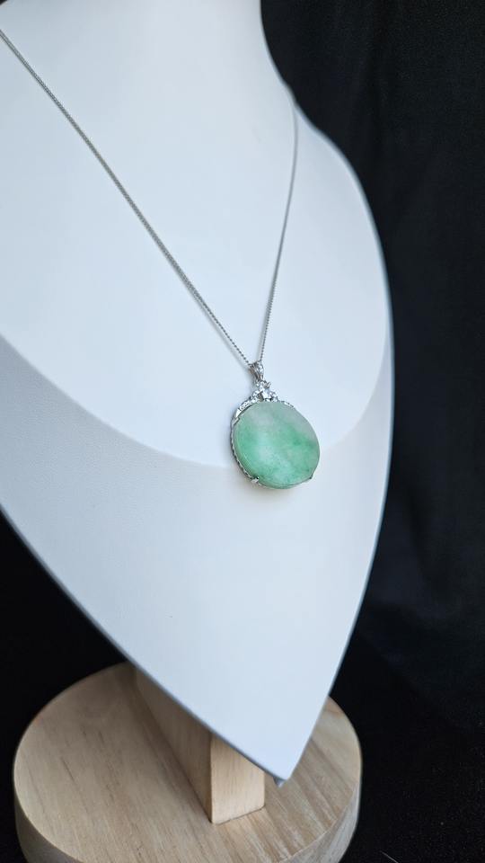 หยกเจไดต์ธรรมชาติ เกรด A, เงิน 925, เพชรสังเคราะห์