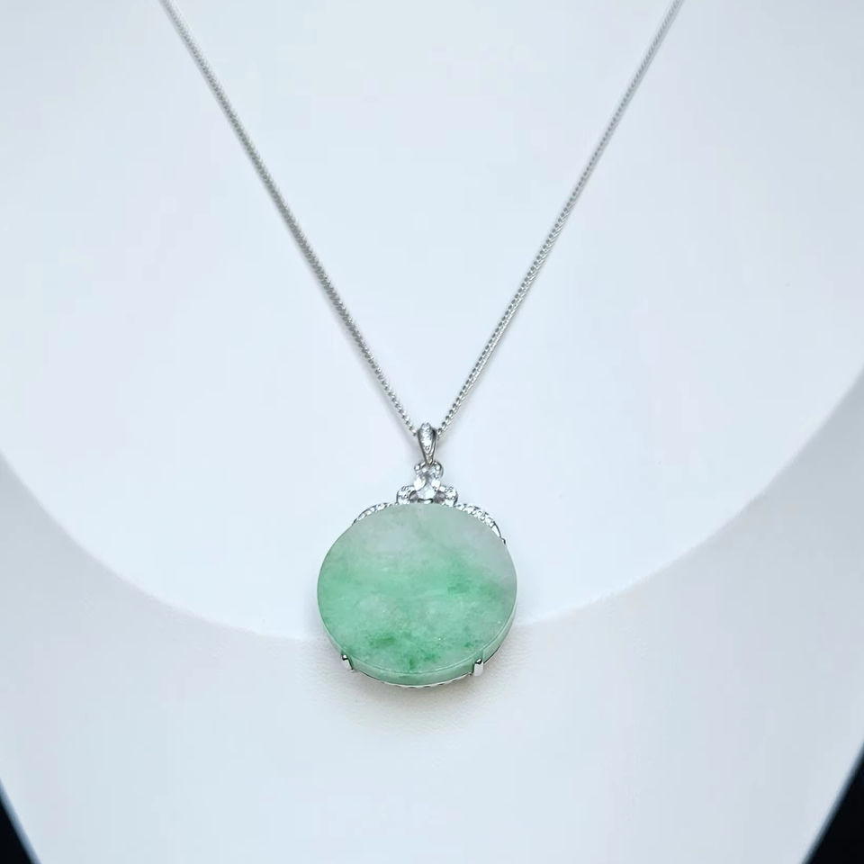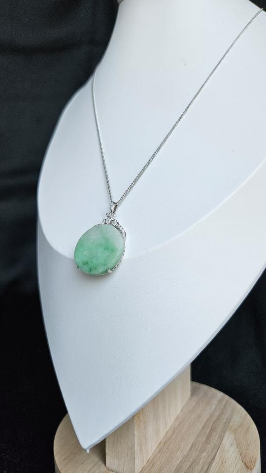 หยกเจไดต์ธรรมชาติ เกรด A, เงิน 925, เพชรสังเคราะห์เครื่องประดับวัสดุหลัก