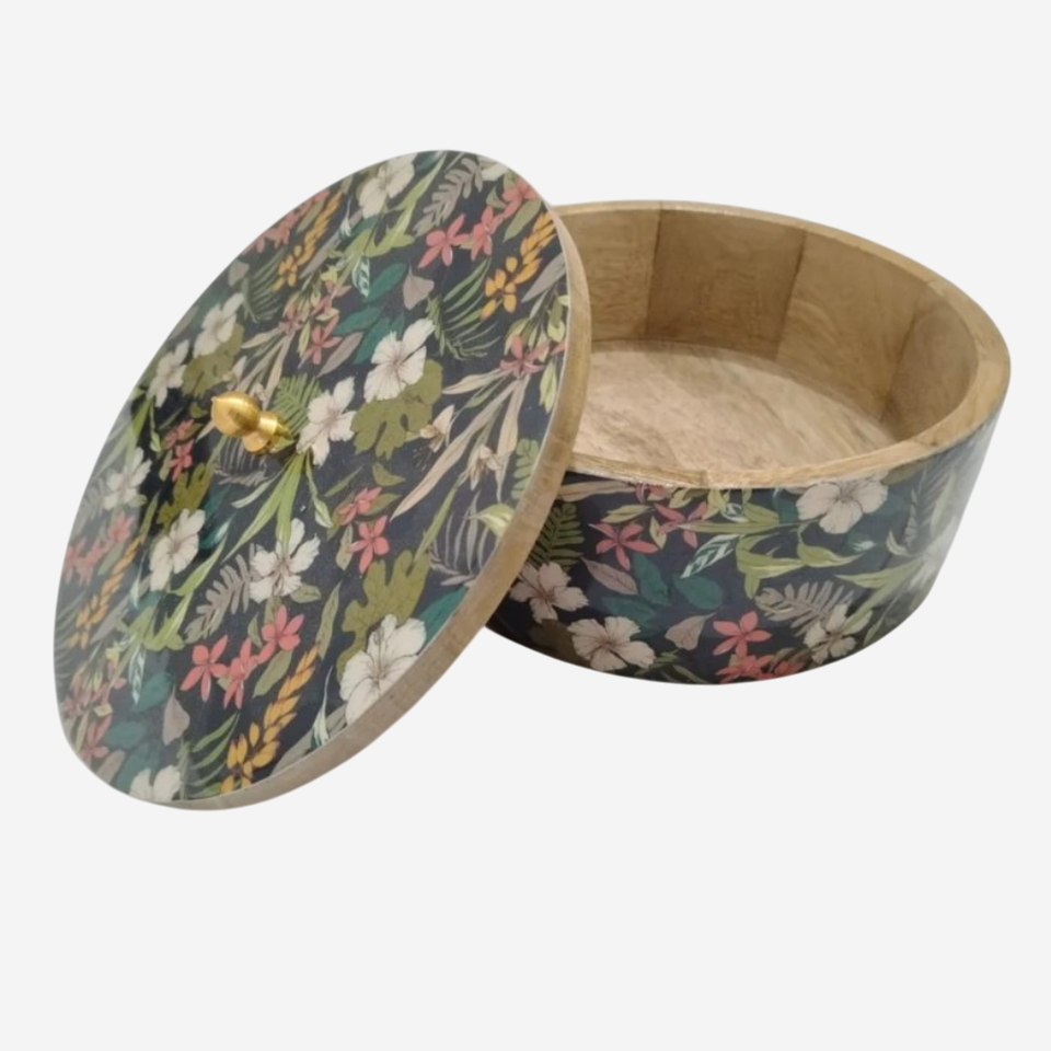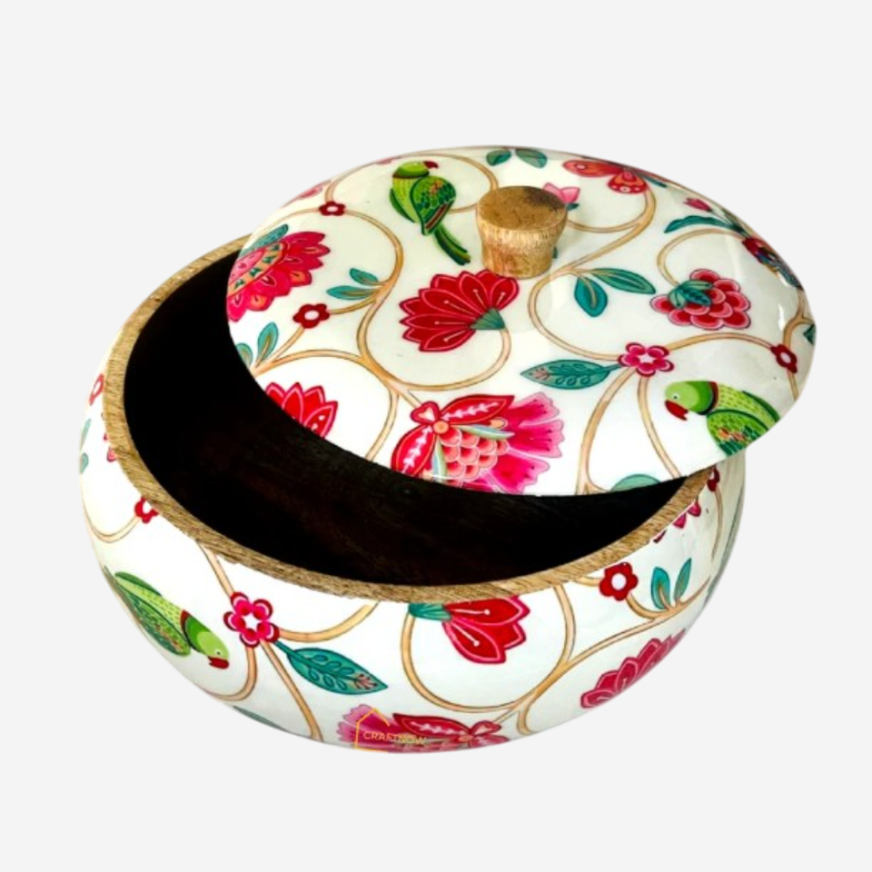 กล่องโรตีไม้พิมพ์ลายดอกไม้พร้อมฝา-ช่วยให้ชาปาติสดและอบอุ่นเครื่องใช้บนโต๊ะอาหารในบ้าน