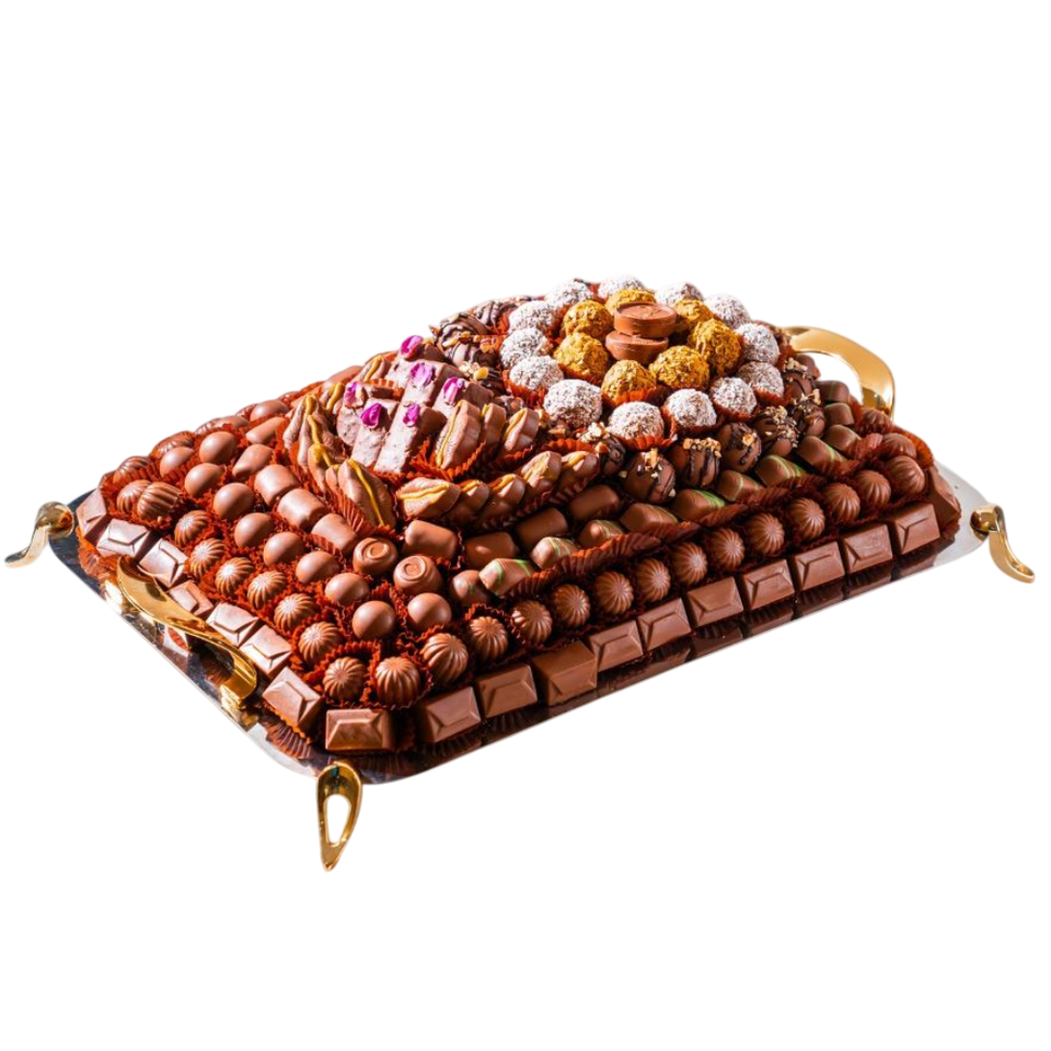 ถาดเสิร์ฟช็อคโกแลตโลหะสีทองพร้อมด้ามจับถาดเสิร์ฟช็อคโกแลตดีไซน์ทันสมัยสำหรับโอกาสพิเศษ