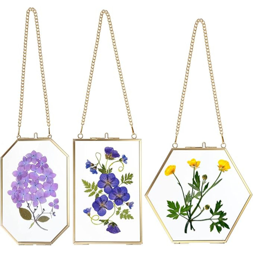 กรอบรูปทองคุณภาพพรีเมียม กรอบรูปกระจกแบบลอยตัว กรอบรูปโลหะตั้งโต๊ะ สำหรับจัดแสดงดอกไม้ ใบไม้ ตกแต่งโต๊ะทำงาน
