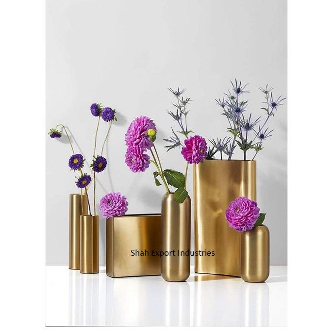 แจกันดอกไม้ประดิษฐ์โลหะคุณภาพเยี่ยม สีทอง มีหลายขนาดและรูปทรง สำหรับตกแต่งงานแต่งงาน งานอีเว้นท์ และงานปาร์ตี้