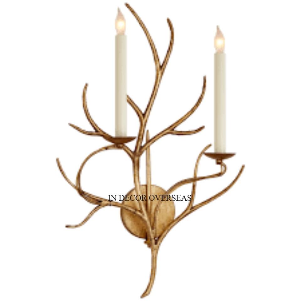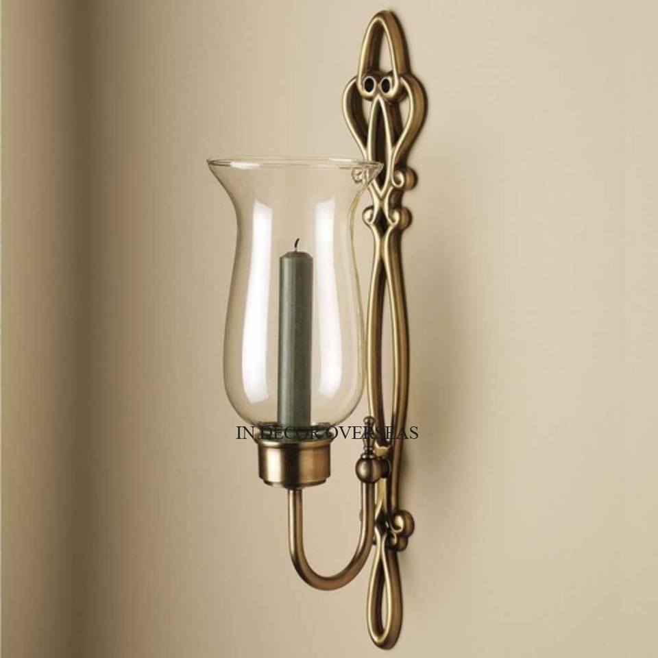 เชิงเทียนโลหะเคลือบทองเกรดสูงเชิงเทียนทำจากแก้วใสสำหรับตกแต่งผนังหรูหรา