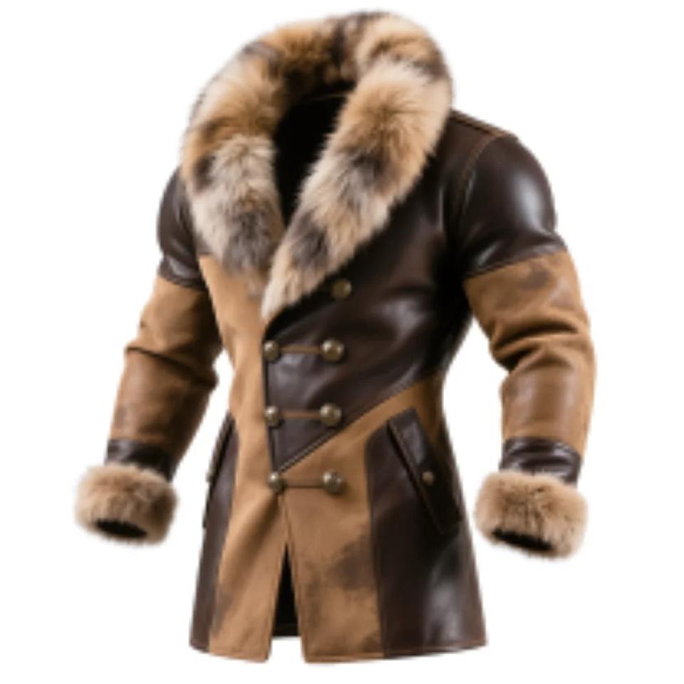 แจ็คเก็ตหนังแกะคุณภาพเยี่ยม สไตล์ใหม่ 2026 เสื้อโค้ทหนังสีน้ำตาลสไตล์เรโทรสำหรับผู้ชาย คอและปลายแขนเสื้อทำจากหนัง