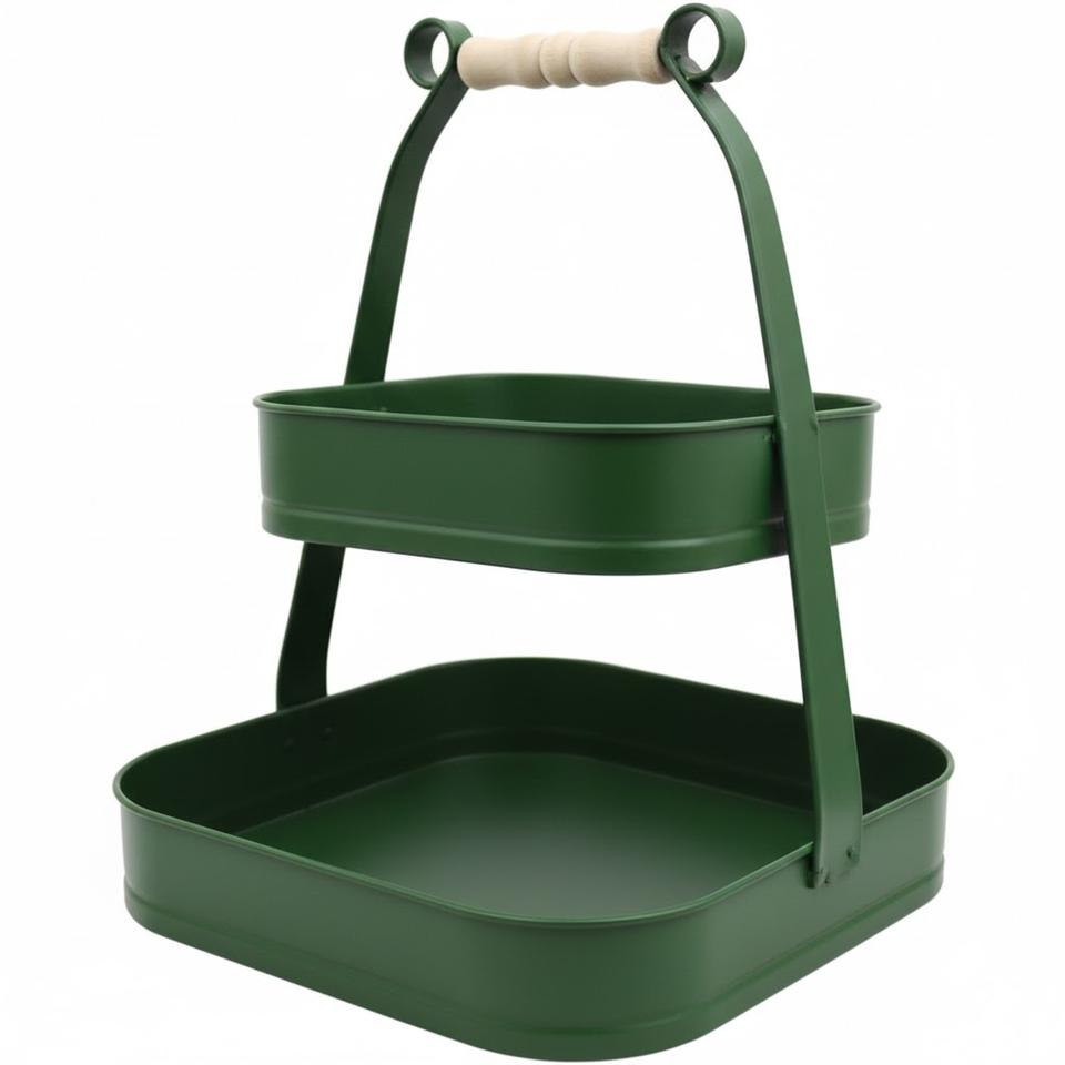 ถาดเหล็กเคลือบสีขาวคุณภาพเยี่ยม รูปทรงสี่เหลี่ยม 2 ชั้น พร้อมหูจับ สำหรับตกแต่งงานปาร์ตี้และงานอีเว้นท์ ขายส่ง