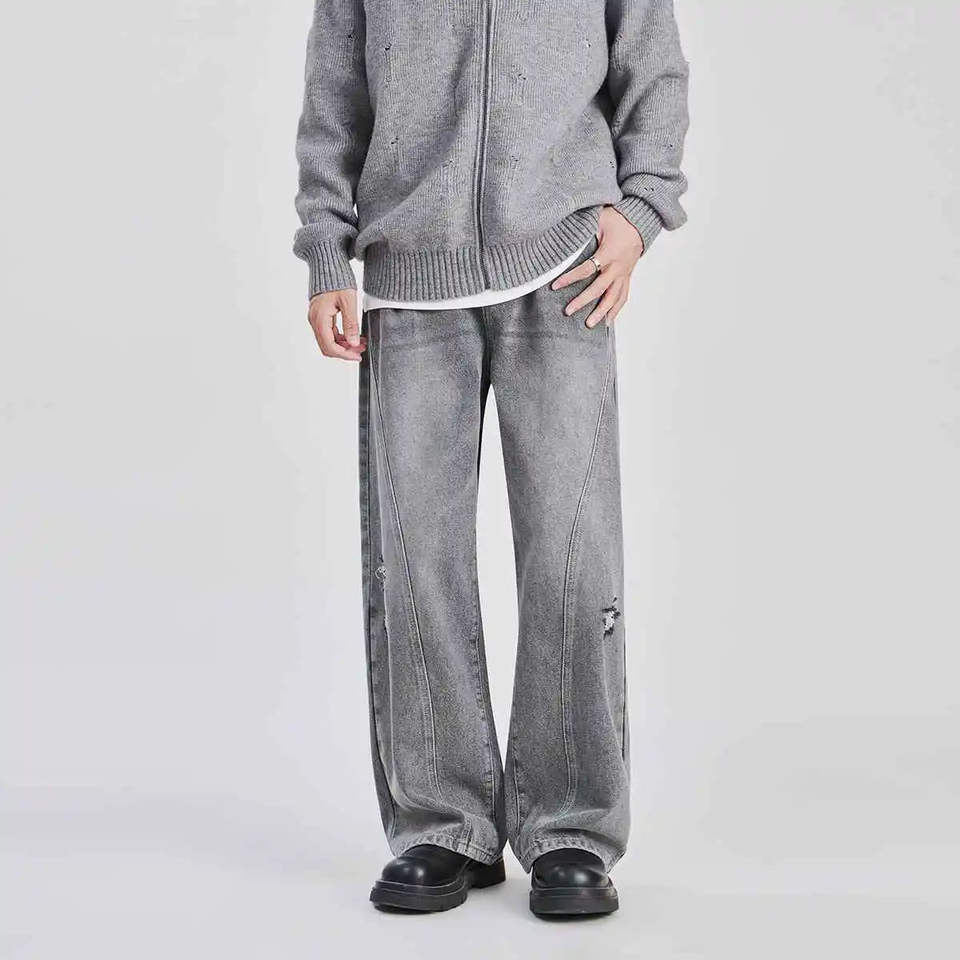กางเกงยีนส์ทรงสลิมฟิตสำหรับผู้ชาย คุณภาพพรีเมียม ลุคขาดๆ แบบวินเทจ สวมใส่สบาย สไตล์สตรีทแวร์ลำลอง ดีไซน์สั่งทำพิเศษ