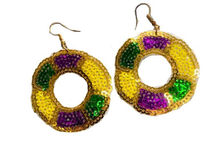 Primum ต่างหูลูกปัดหัวใจมาร์ดิกราส์สีเหลือง/ม่วง/เขียวดีไซน์ใหม่ทันสมัยสำหรับงานฉลองเทศกาลมาร์ดิกราส์