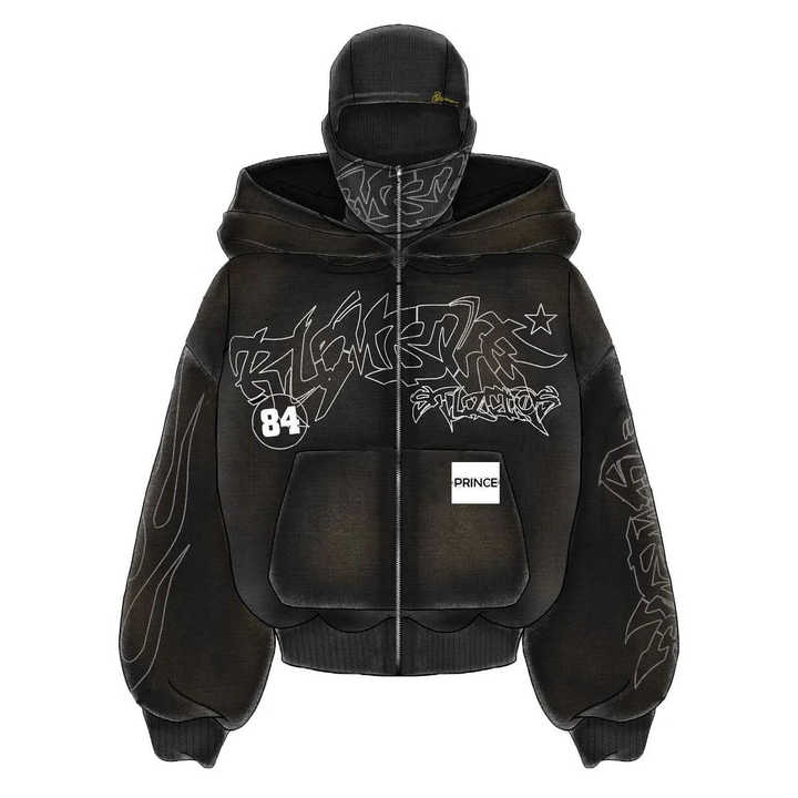 เสื้อฮู้ดหนาแบบปรับแต่งได้สำหรับทุกเพศ พร้อมหน้ากากนินจาแบบสองชั้น ผ้าเฟรนช์เทอร์รี่ ล้างสีแบบแอซิดวอช ใช้เป็นหน้ากากสกีได้
