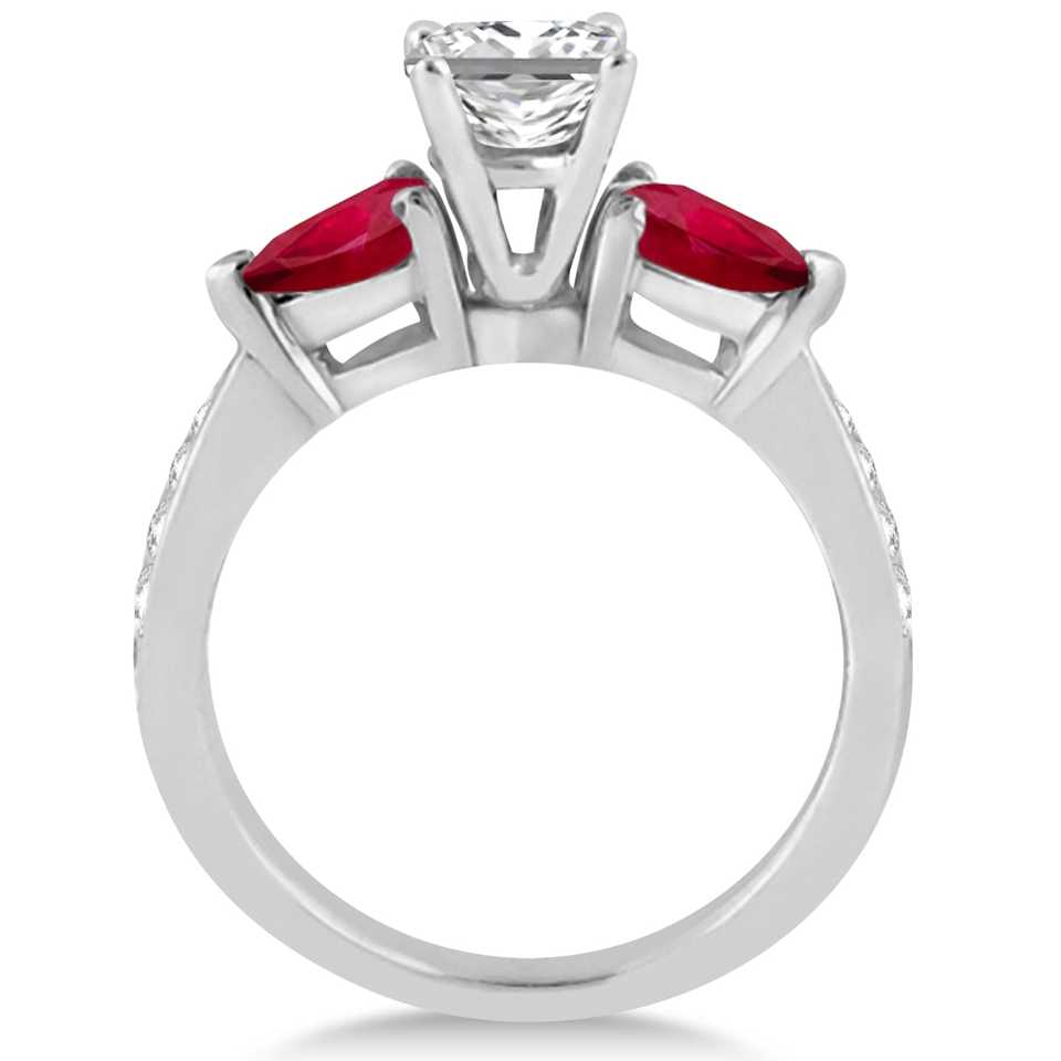แหวนหมั้นเจ้าหญิง 1.29 กะรัต ประดับเพชรและพลอยทับทิมทรงลูกแพร์ ทองคำขาว 18k สไตล์เรขาคณิตโรแมนติก เครื่องประดับชั้นดี