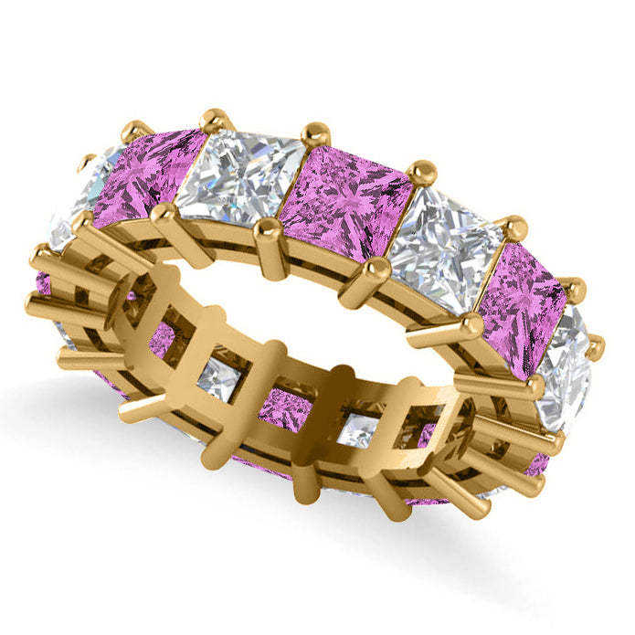 แหวนแต่งงานทองคำ 14k สีเหลือง ประดับเพชรทรงมาร์ควิสและทรงเหลี่ยมมรกต พร้อมพลอยสีชมพู รูปทรงเรขาคณิต น้ำหนัก 10.08 กะรัต ตัวเรือนทองคำขาว