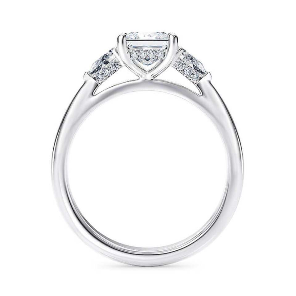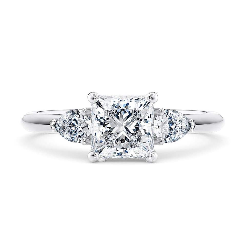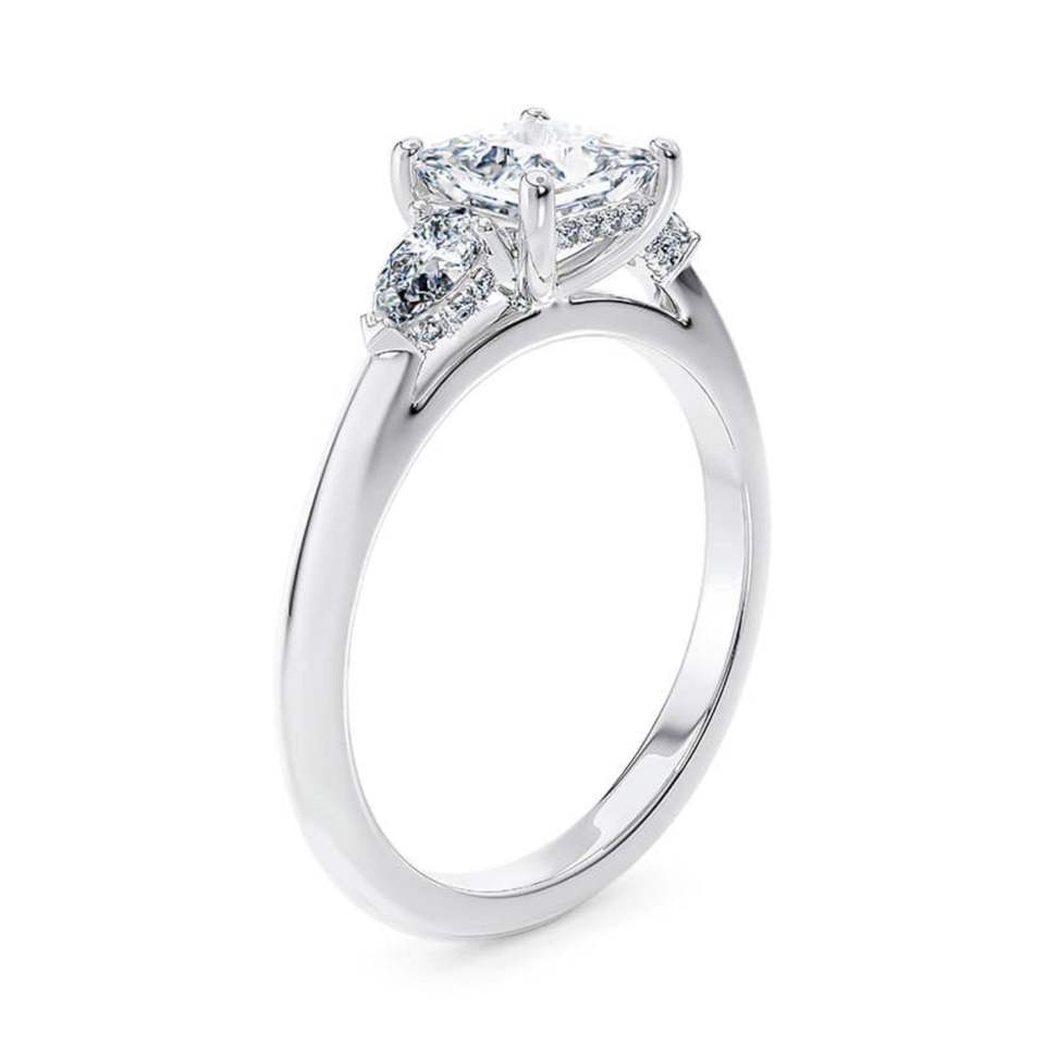 Princess And Pear Cut Three Stone Lab Diamond Engagement Ring In White Gold
