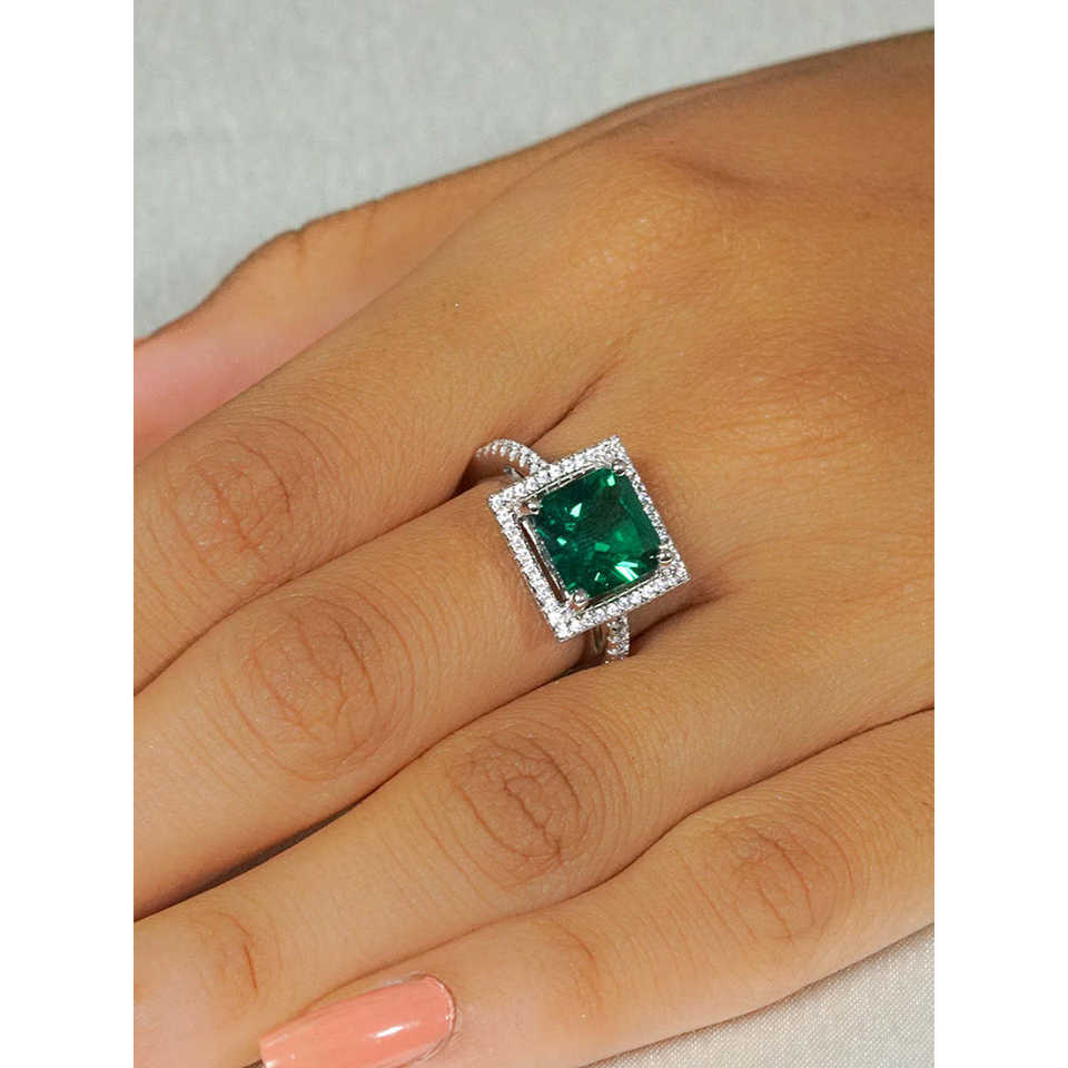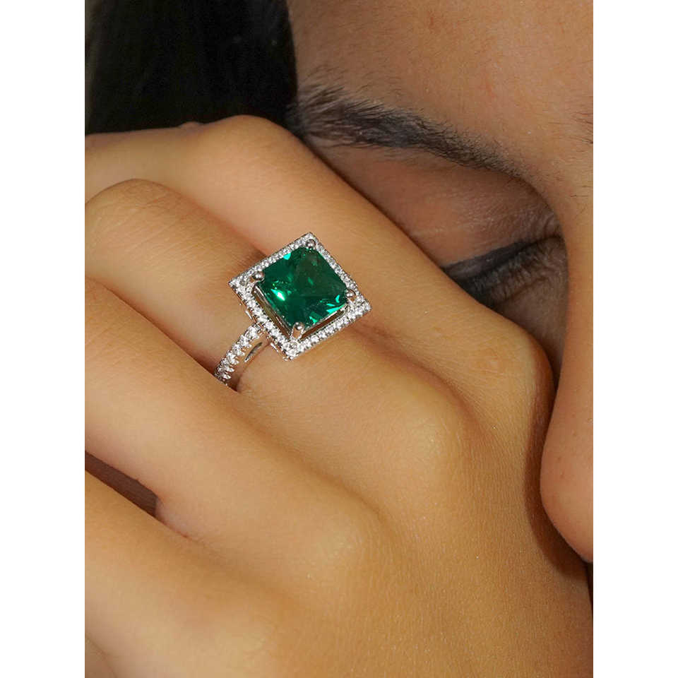 แหวนเงิน925มรกตที่เจ้าหญิงสร้างขึ้นพร้อมชุบโรเดียมประดับหินโอปอลและโทแพซธรรมชาติ