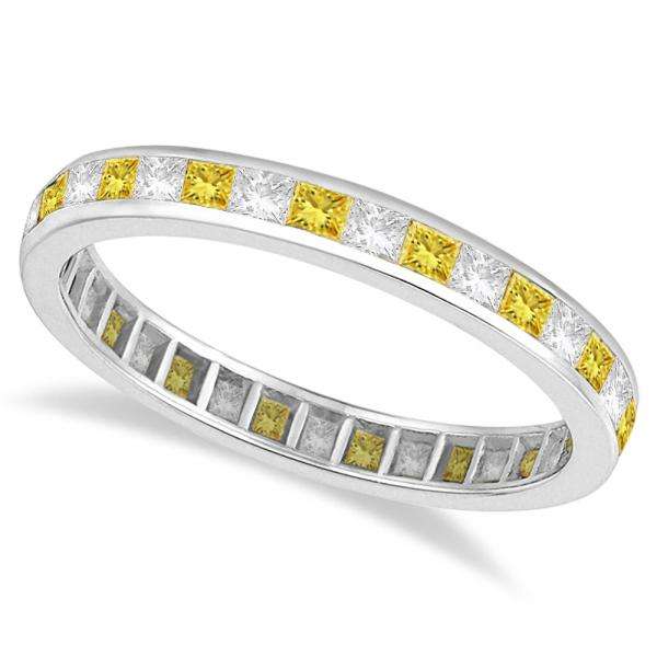 แหวนเพชรทรงเจ้าหญิง 1.26 กะรัต สีเหลืองและสีขาว ประดับเพชรตลอดวง ทำจากทองคำขาว 14k หรูหราและเปล่งประกาย