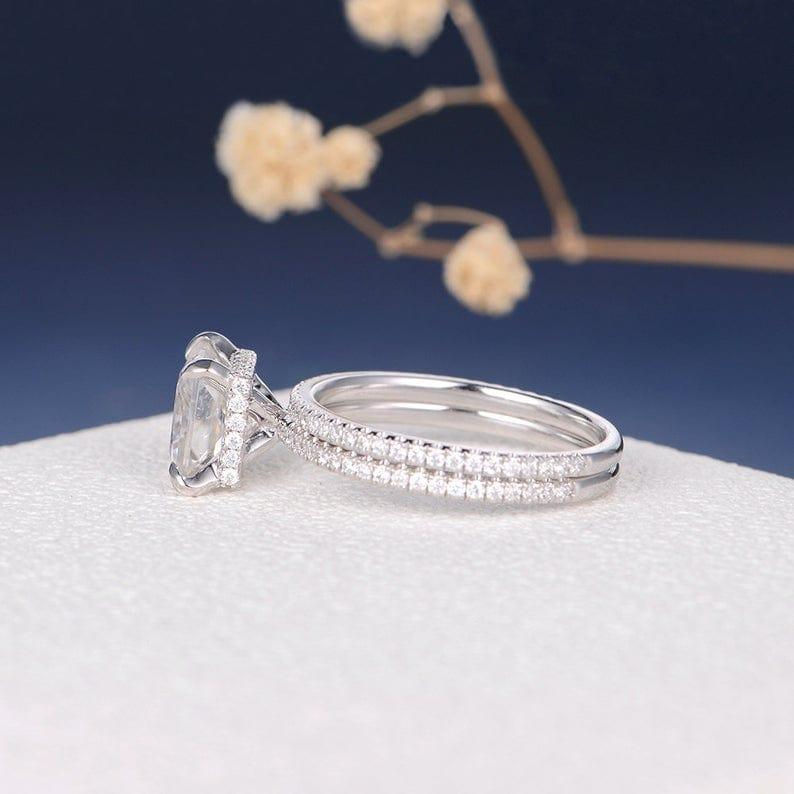 ชุดแหวนเพชรสำหรับเจ้าสาว1.50กะรัตเพชรโมอิสซาไนต์สำหรับผู้หญิงชุดแหวนแต่งงานหมั้นทองคำขาวชุดเครื่องประดับตามหลักจริยธรรม