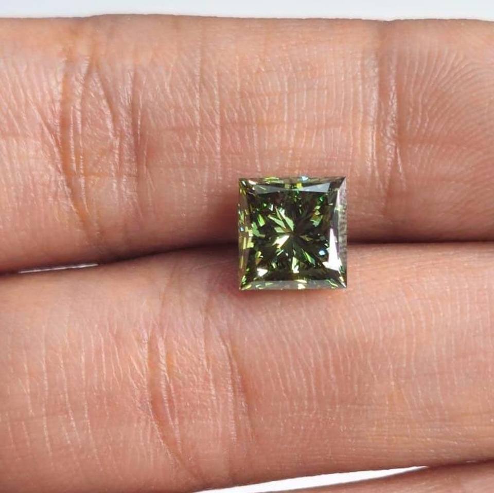 เพชรเจ้าหญิงทรงเหลี่ยม 2 กะรัต สีเขียวสดใส เพาะเลี้ยงในห้องปฏิบัติการ สำหรับทำแหวน ได้รับการรับรองจาก IGI เพชร CVD แบบหลวม ผลิตจากอินเดีย