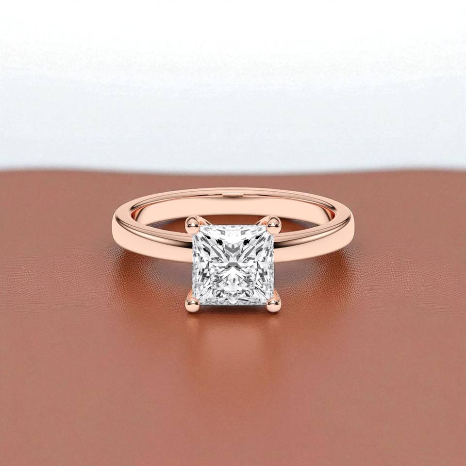 แหวนเพชรทรงปรินเซสคัท 3.00 กะรัต E-F/VVS-VS เพชรเลี้ยงในห้องปฏิบัติการ ฝังแบบหนามเตย แหวนหมั้นทองคำแท้ 14K สำหรับผู้หญิง