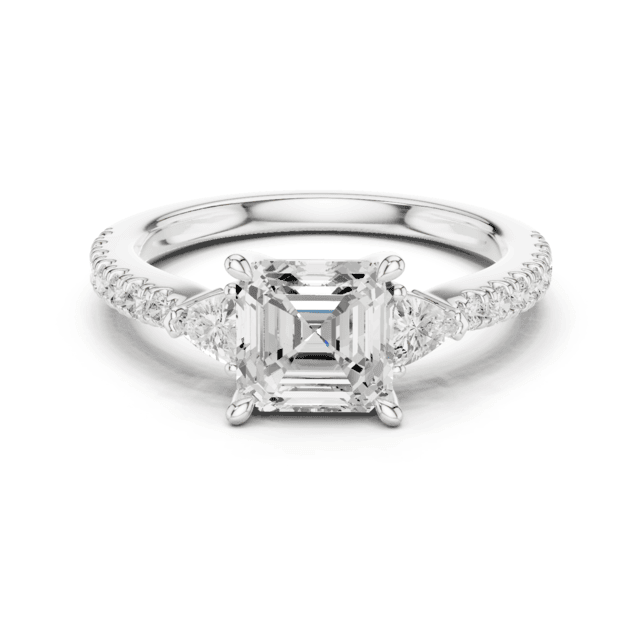 แหวนหมั้นเพชรทรงเจ้าหญิงประดับเพชรด้านข้างทรงเรียว | แหวนเครื่องประดับหรูหราสำหรับผู้หญิง
