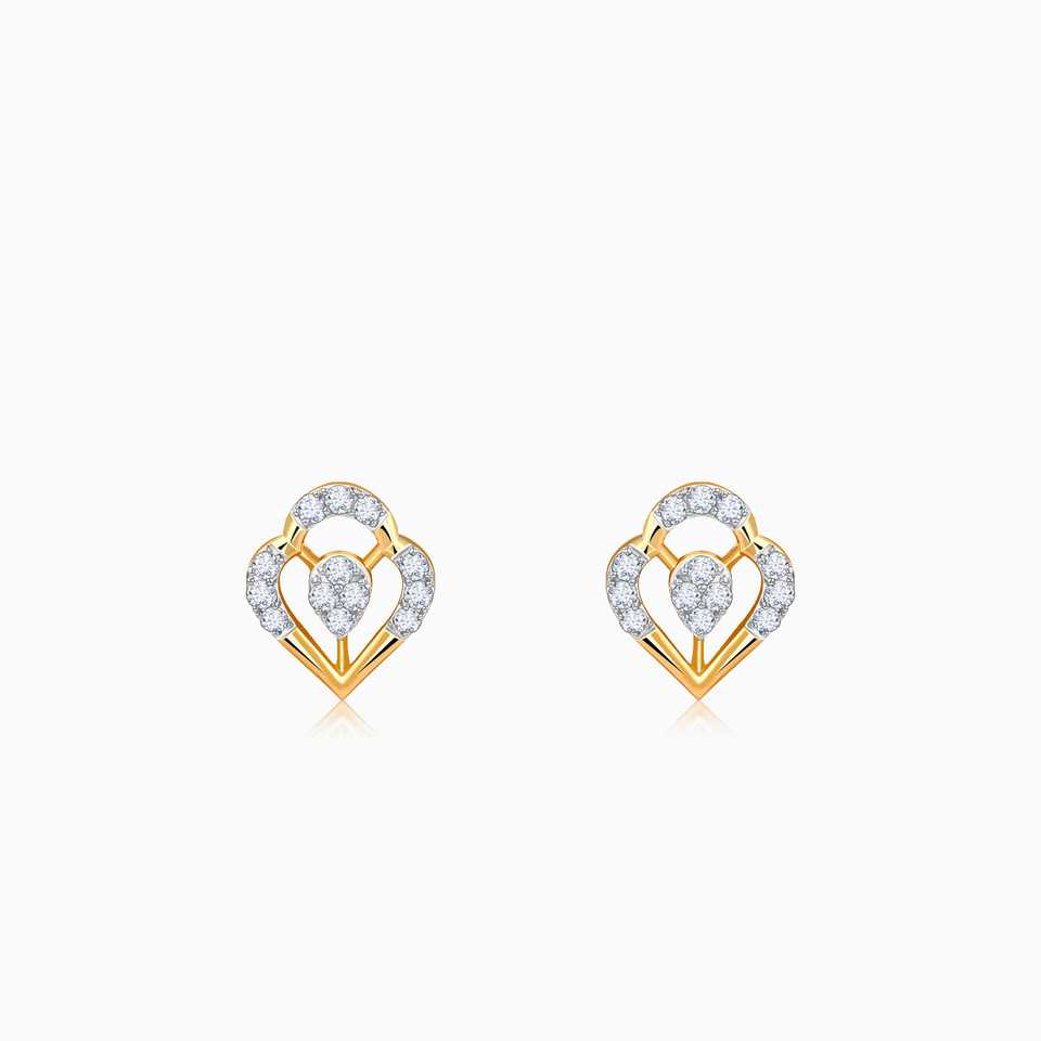 ต่างหูสตั๊ดประดับเพชรรูปเจ้าหญิงสีทองกลีบดอกไม้บานสไตล์วินเทจ14K/18K สีเหลือง/โรสโกลด์ชุบด้วยรูปดาว