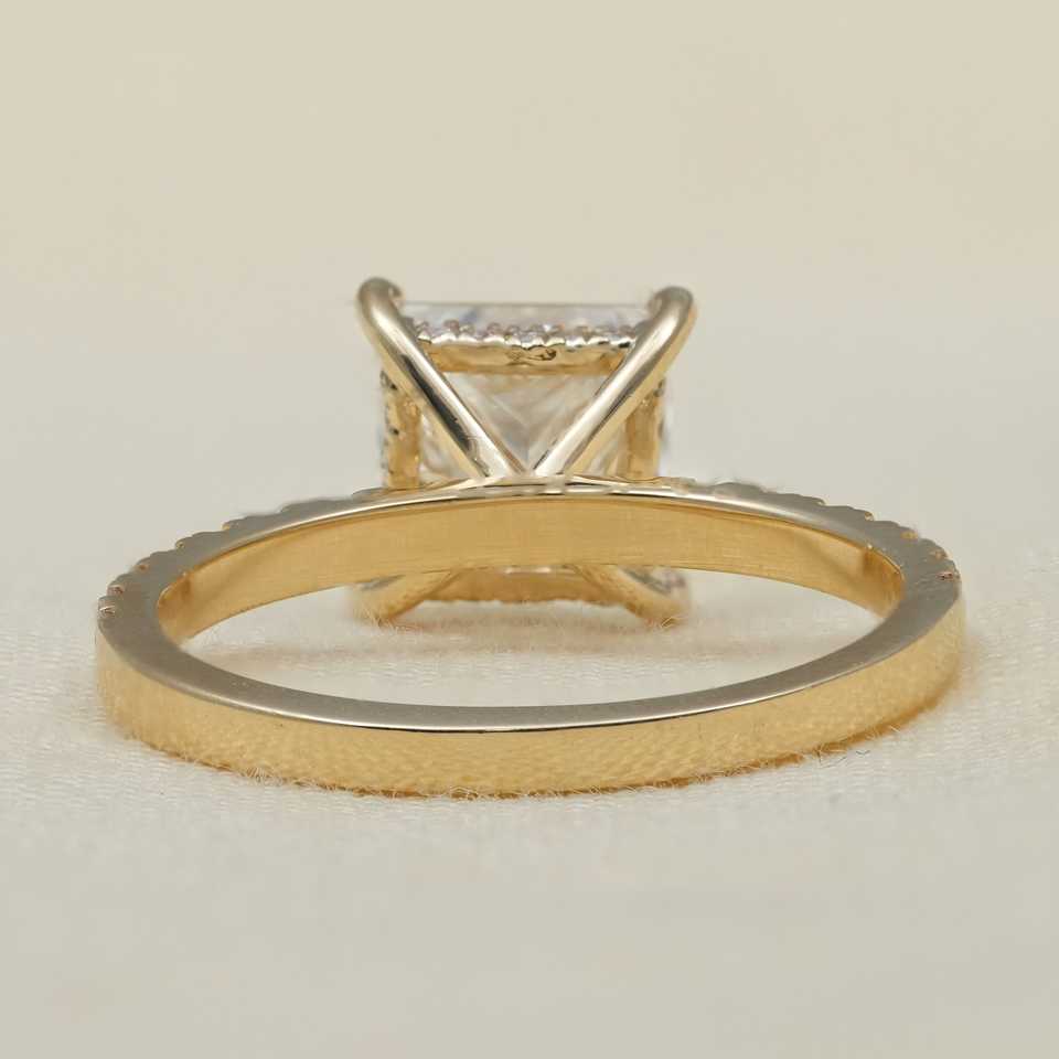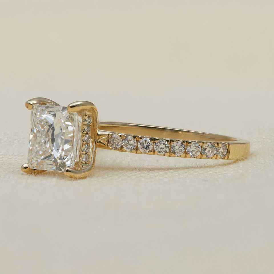แหวนหมั้นเพชรทรงปรินเซสคัท เพชรเลี้ยงในห้องปฏิบัติการ ประดับเพชรข้างแบบซ่อนรูปวงกลม ตัวเรือนเงินสเตอร์ลิง/แพลตตินัม น้ำหนัก 2.040 กะรัต ความสะอาดระดับ VS1 ดีไซน์หรูหรา