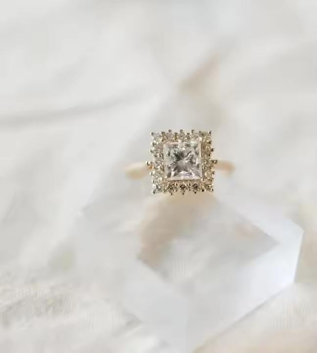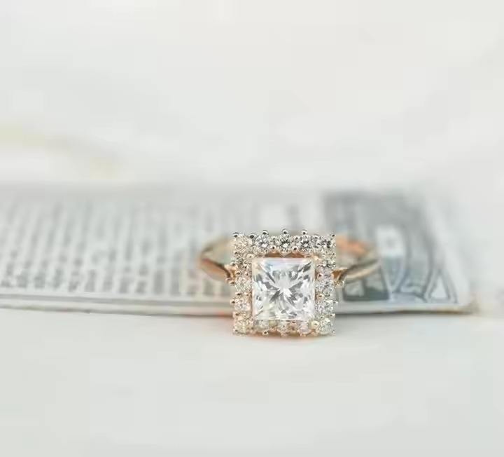 แหวนหมั้นสำหรับผู้ใหญ่แบบตัดในห้องปฏิบัติการเจ้าหญิง14K สีทองทึบชุดสำหรับเจ้าสาวเครื่องประดับเพชรรัศมีสีเงินคุณภาพดีสำหรับวันครบรอบ