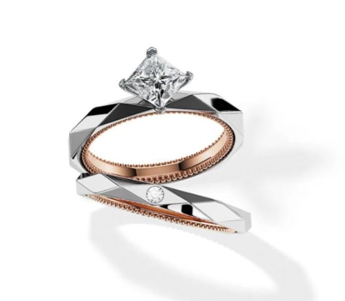 ชุดแหวนเพชรโมอิสซานไนต์ตัดแบบเจ้าหญิงชุดเงินสเตอริงแสนสวยแหวนเพชรสองสีและเครื่องประดับเพชรอื่นๆ