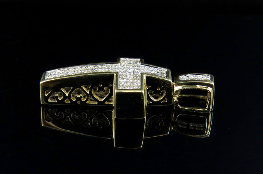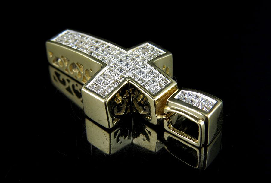 จี้เพชรรูปไม้กางเขนเพชรโมอิสสำหรับนักซ่อมเครื่องประดับแนวฮิปฮอปเย็นชุบทองเครื่องประดับแบบกำหนดเอง