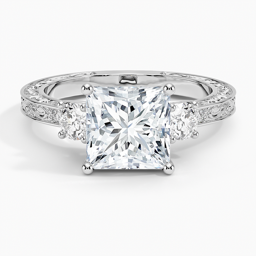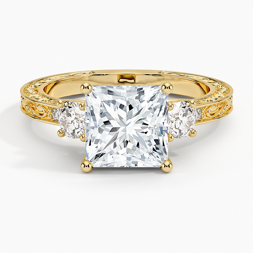ชุดแหวนหมั้นสำหรับงานแต่งงานหินโมอิสซาไนต์ตัดเป็นรูปเจ้าหญิงแกะสลักด้วยมือโบราณ10K สีทองหรูหราคลาสสิก