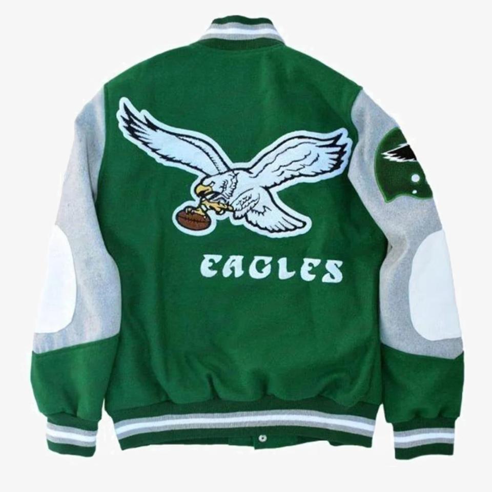 เสื้อแจ็คเก็ตวาร์ซิตี้สีเขียวลายอินทรีฟิลาเดลเฟียของเจ้าหญิงไดอาน่า สำหรับผู้ชายและผู้หญิง