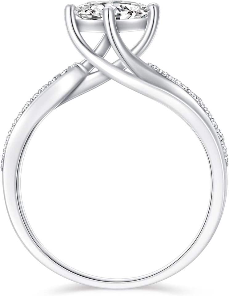 แหวนหมั้นเจ้าหญิงสำหรับผู้หญิงแหวนเงินชุบทองคำขาว