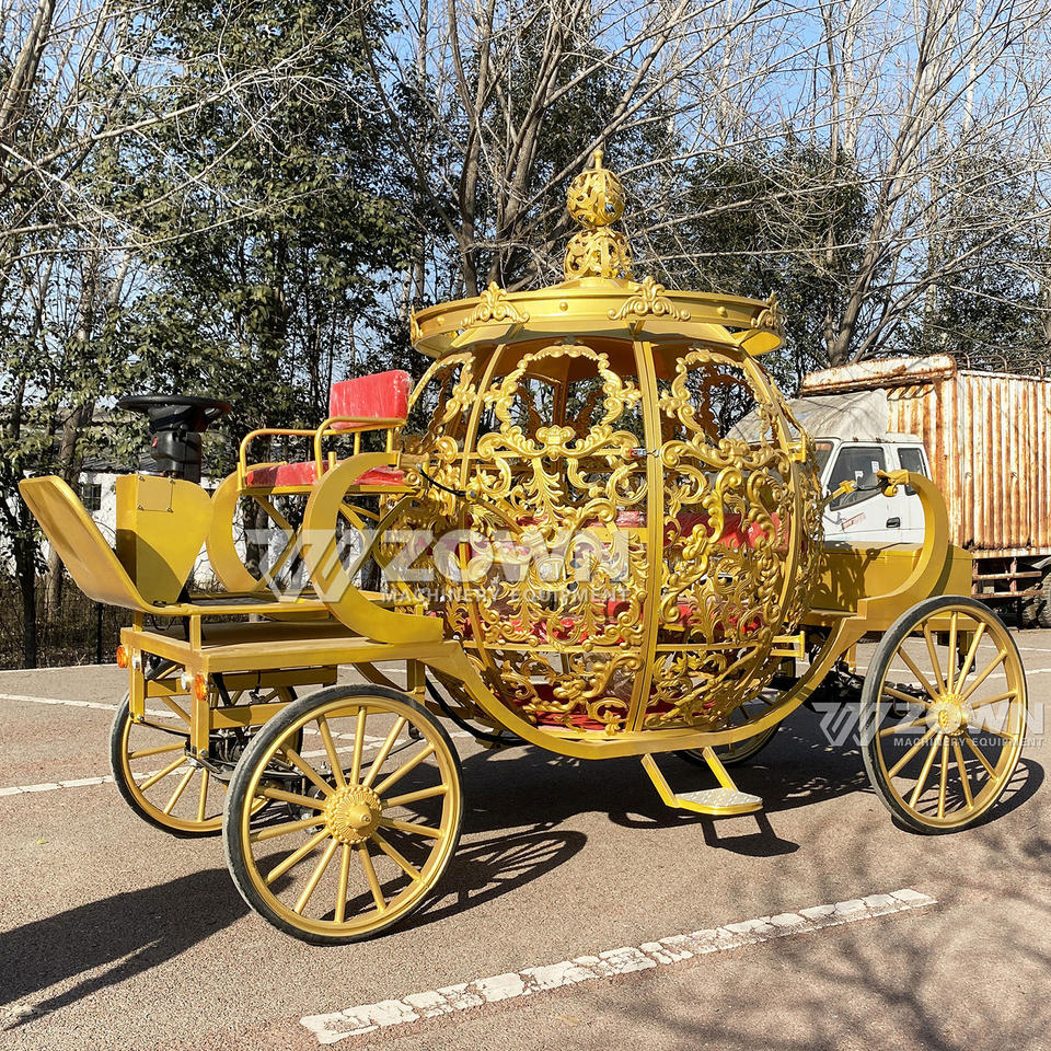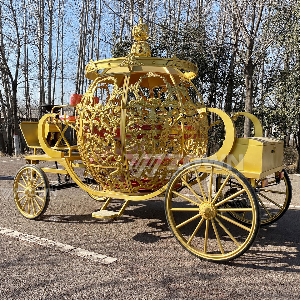 รถม้าฟักทองสไตล์เจ้าหญิงซินเดอเรลล่ารถม้าสีทองขับเคลื่อนด้วยมือคลาสสิก