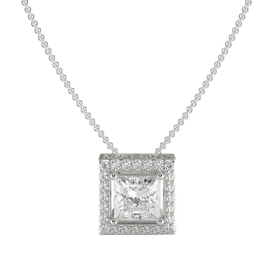 จี้เพชรฮาโลรูปทรงเจ้าหญิง,พลอย CVD เพชรสีขาวทอง18 K ได้รับการรับรองจาก IGI สำหรับเด็กผู้หญิง