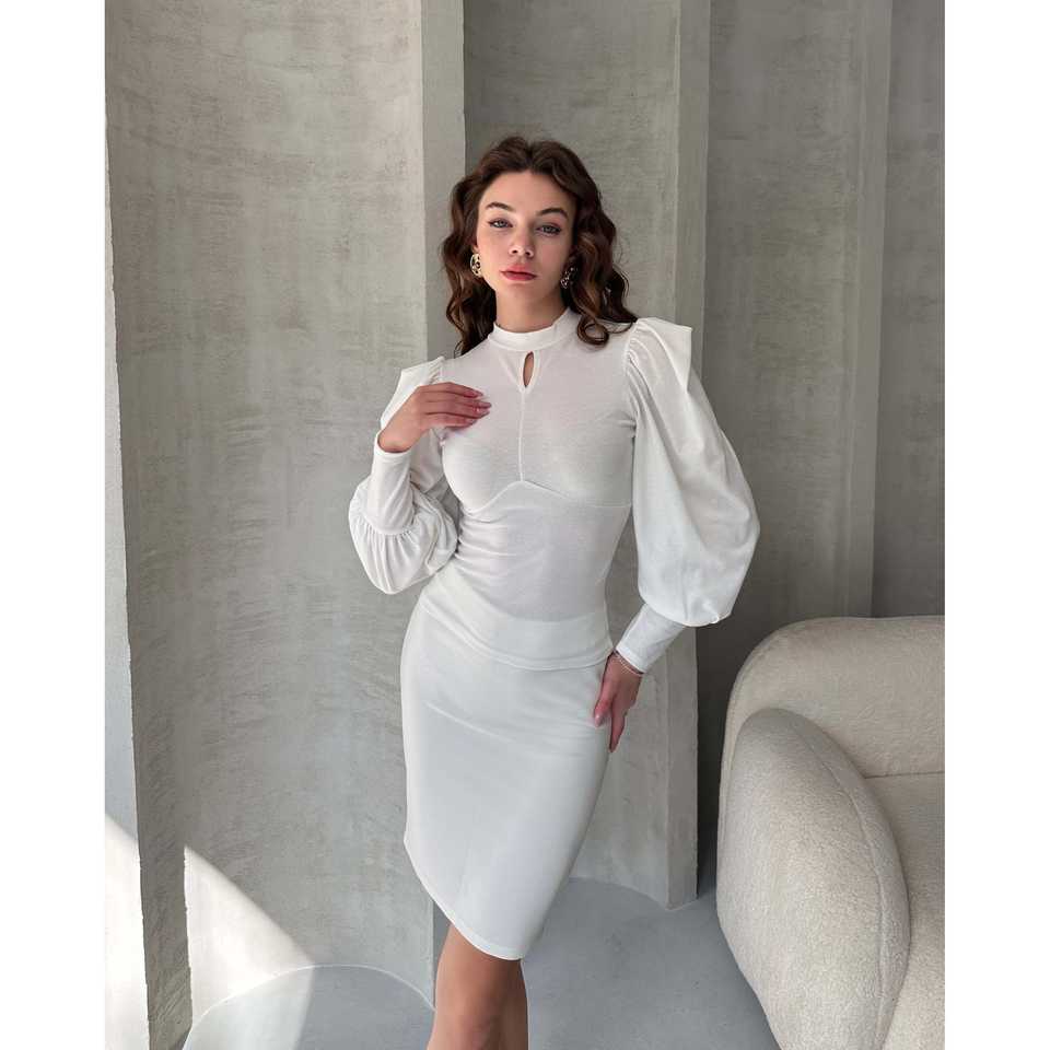 เสื้อเบลาส์ผ้าเครปทรงแขนเจ้าหญิง พร้อมดีเทลคอแบบ Kissing Neck ทรงเข้ารูปและเอวธรรมชาติ