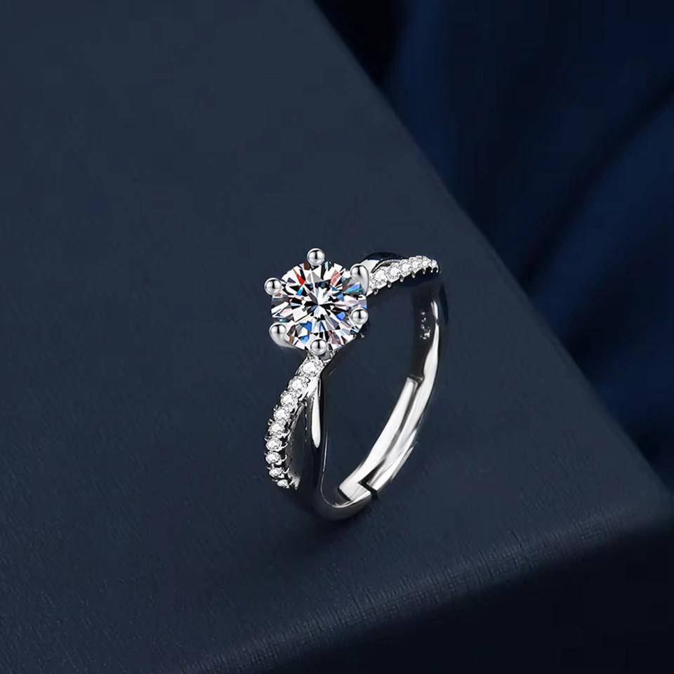 แหวนเพชรเม็ดกลมแบบปรับได้สำหรับการตัดในห้องทดลองแบบเจ้าหญิงแหวนเพชรครึ่งหนึ่งสำหรับการหมั้นด้วยความเงางามอย่างสง่างาม