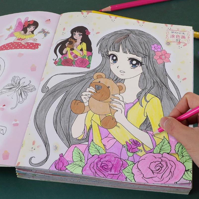 เจ้าหญิงของเล่นการ์ตูนสามมิติสำหรับนักเรียนเพื่อการศึกษาระบายสีหนังสือภาพด้วยดินสอปกกระดาษเครื่องเขียน