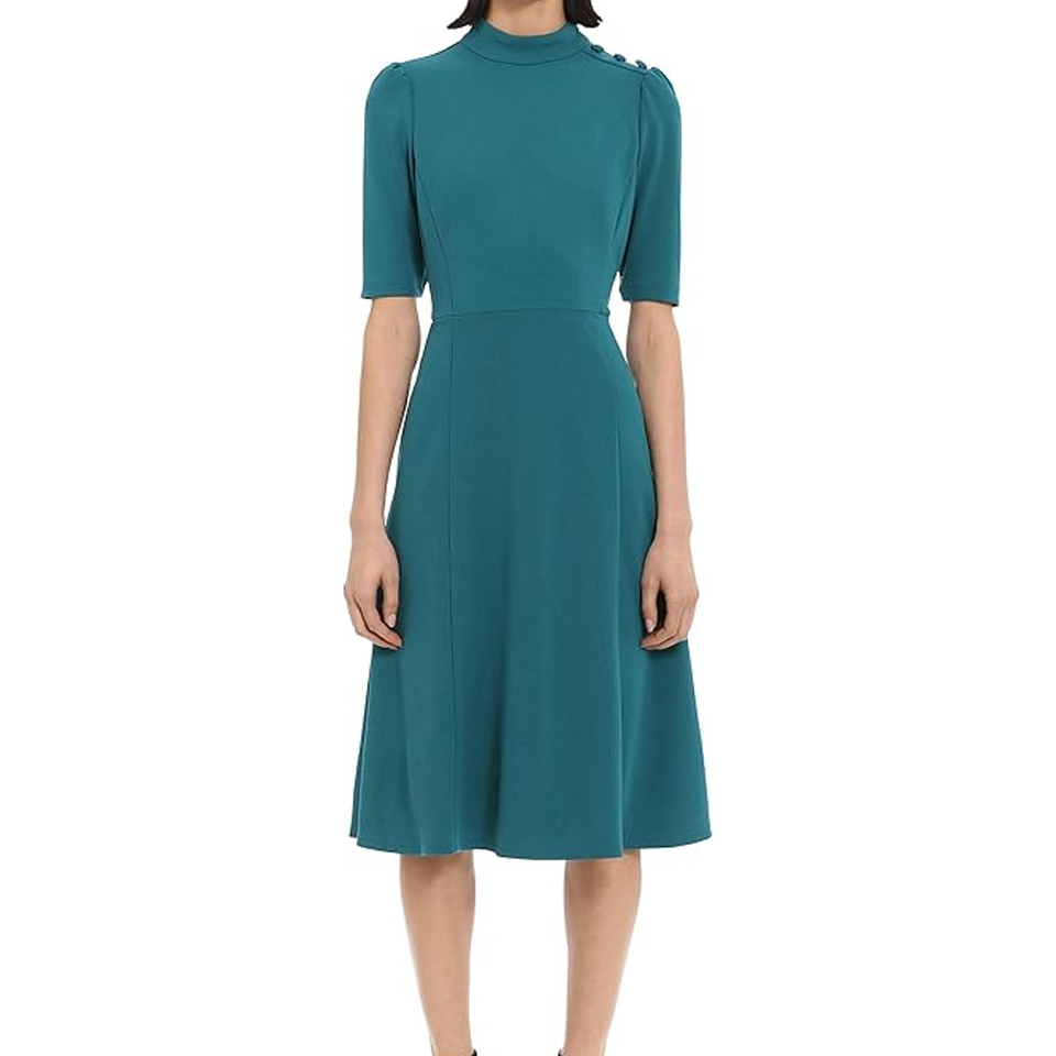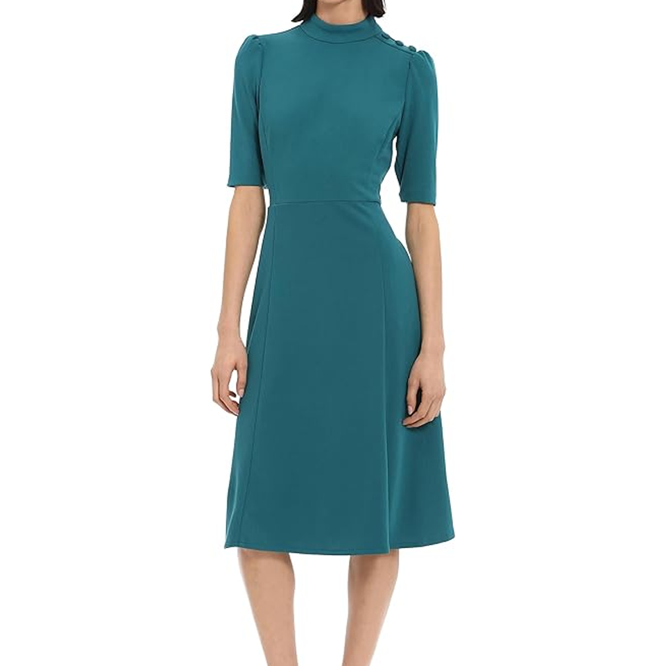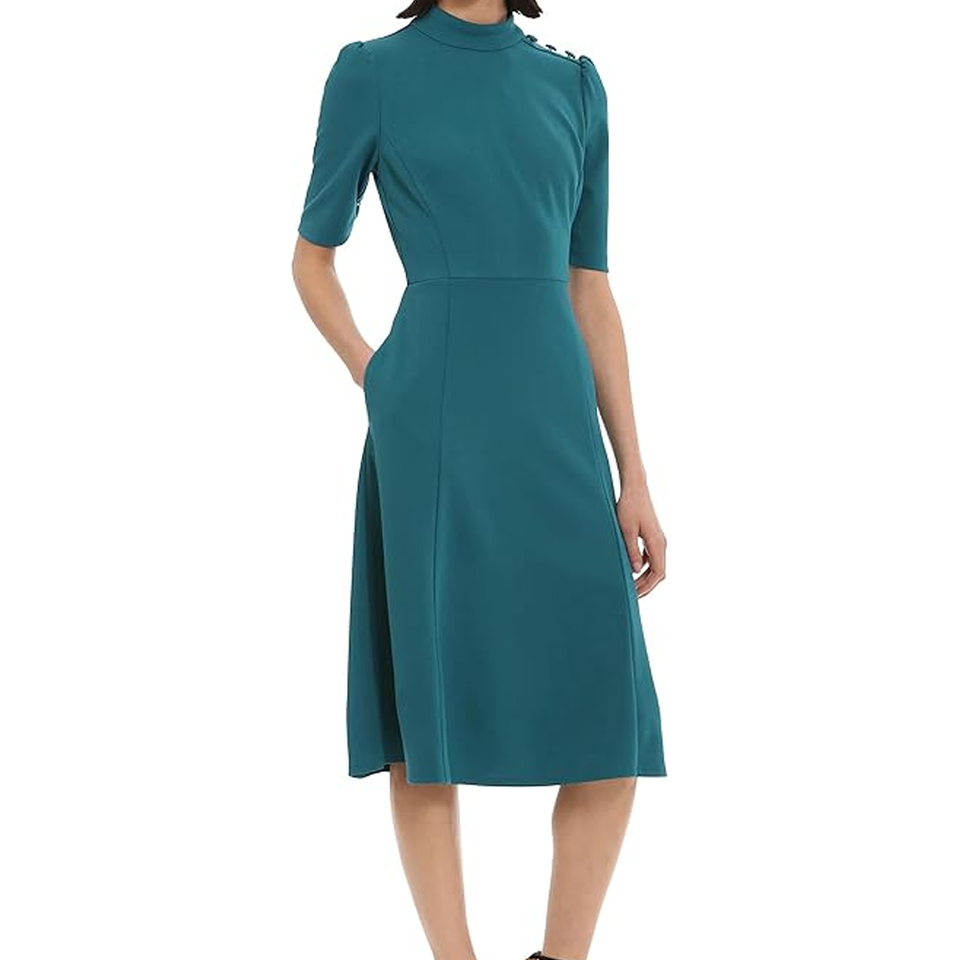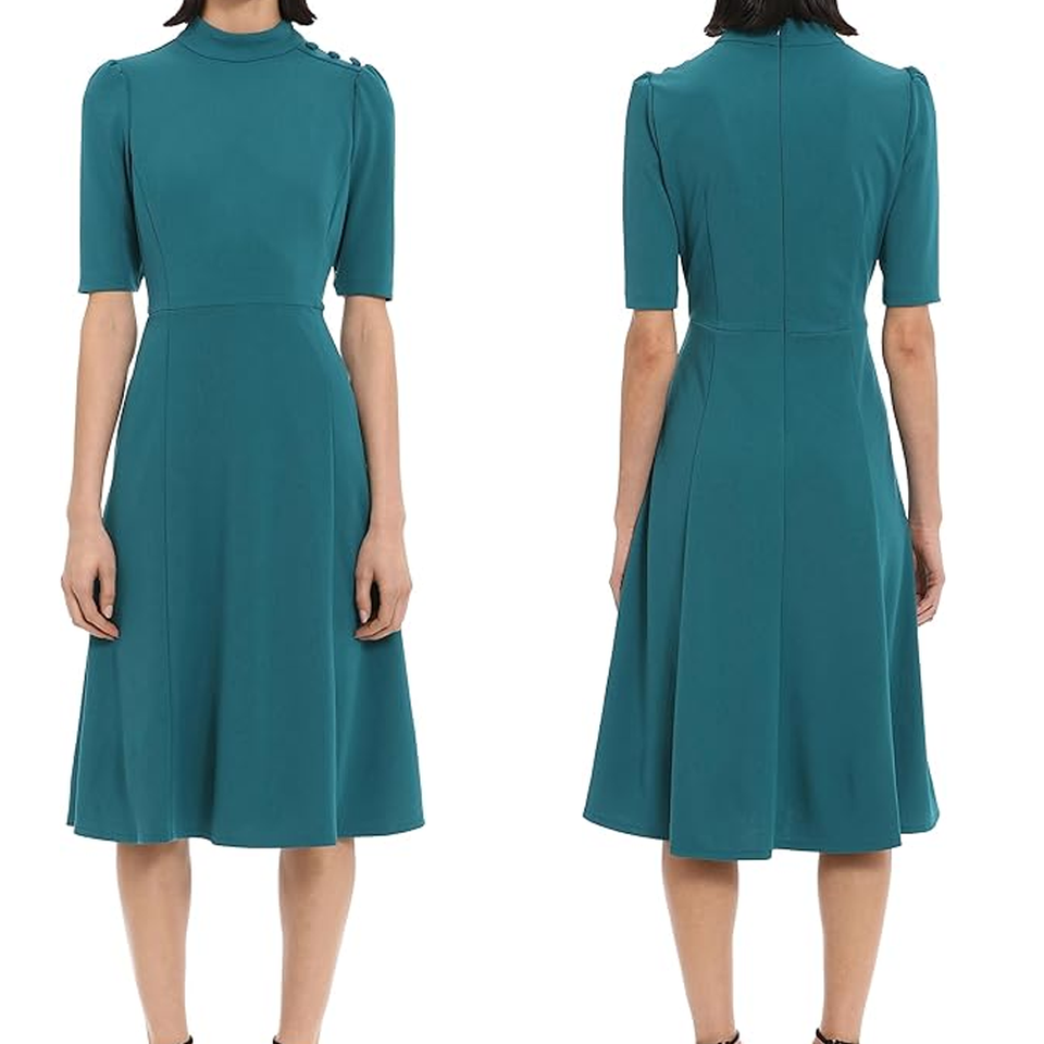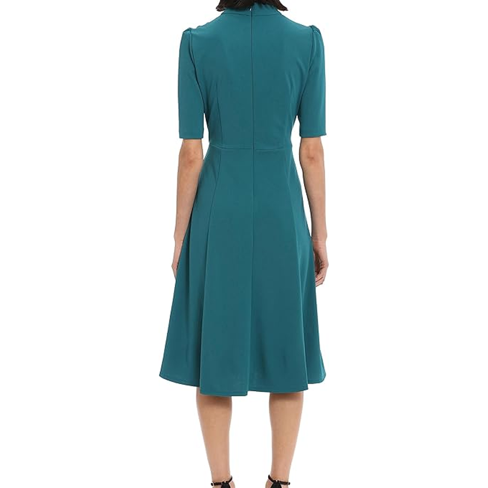 ชุดเดรสเจ้าหญิงเอวตะเข็บตะเข็บเจ้าหญิงชุดเดรสทำงานผ้าเครปสำหรับผู้หญิงทันสมัยสไตล์สาวออฟฟิศฤดูร้อนงานเลี้ยงอาหารค่ำ