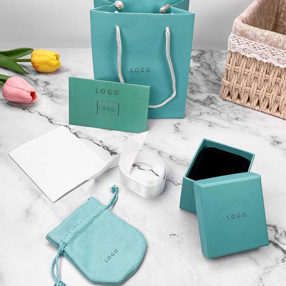 กระเป๋าผ้ากำมะหยี่พิมพ์โลโก้หรูหรากระเป๋ากระดาษสร้อยคอแหวนต่างหูกล่องบรรจุภัณฑ์เครื่องประดับ