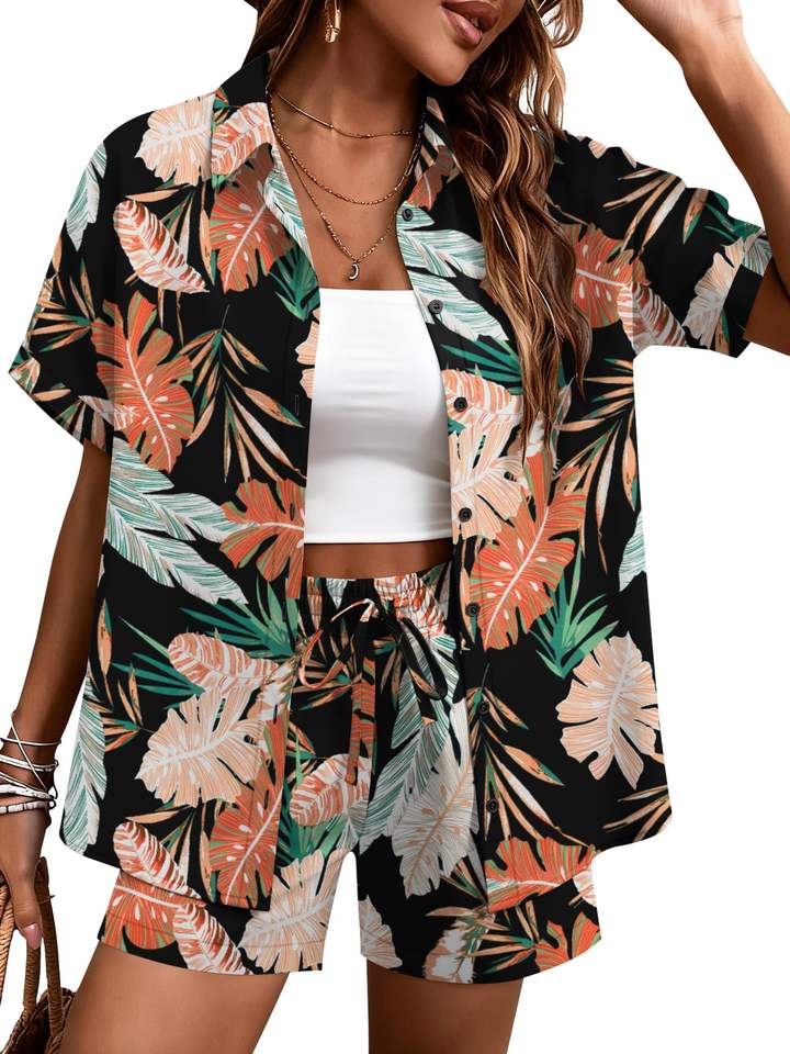 เสื้อเชิ้ตพิมพ์ลายสำหรับเดินทางช่วงฤดูร้อน กางเกงขาสั้นลำลอง ชุดเที่ยวทะเล ชุดฤดูร้อน 2026 ลายพิมพ์