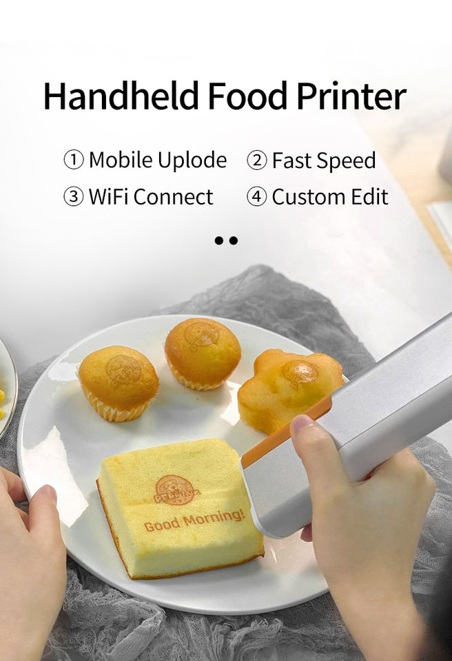 เครื่องพิมพ์อาหาร PrintPen เครื่องพิมพ์บนพื้นผิวอาหาร เค้ก มาการอง เครื่องพิมพ์อิงค์เจ็ทแบบพกพาสำหรับอาหาร เครื่องพิมพ์ดิจิทัลแบบมือถือ พิมพ์ลายกาแฟลาเต้อาร์ต
