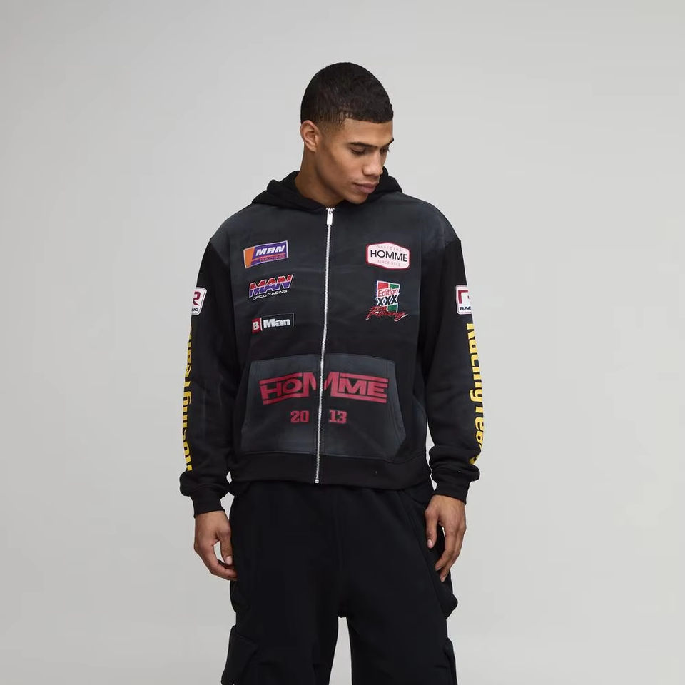 เสื้อมีฮู้ดผู้ชายผ้าฝ้าย100% พิมพ์ลายน้ำหนักผ้า500กรัมมีฮู้ดแบบรูดซิปใส่ได้ทั้งชายและหญิงผ้าคอตตอนกำหนดได้เองสำหรับฤดูหนาว