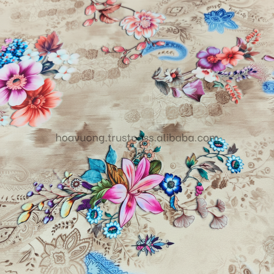 ผ้าไหมพิมพ์ลาย 100D วัสดุหรูหราสำหรับชุดนอนและชุดลำลองสำหรับวัยกลางคน