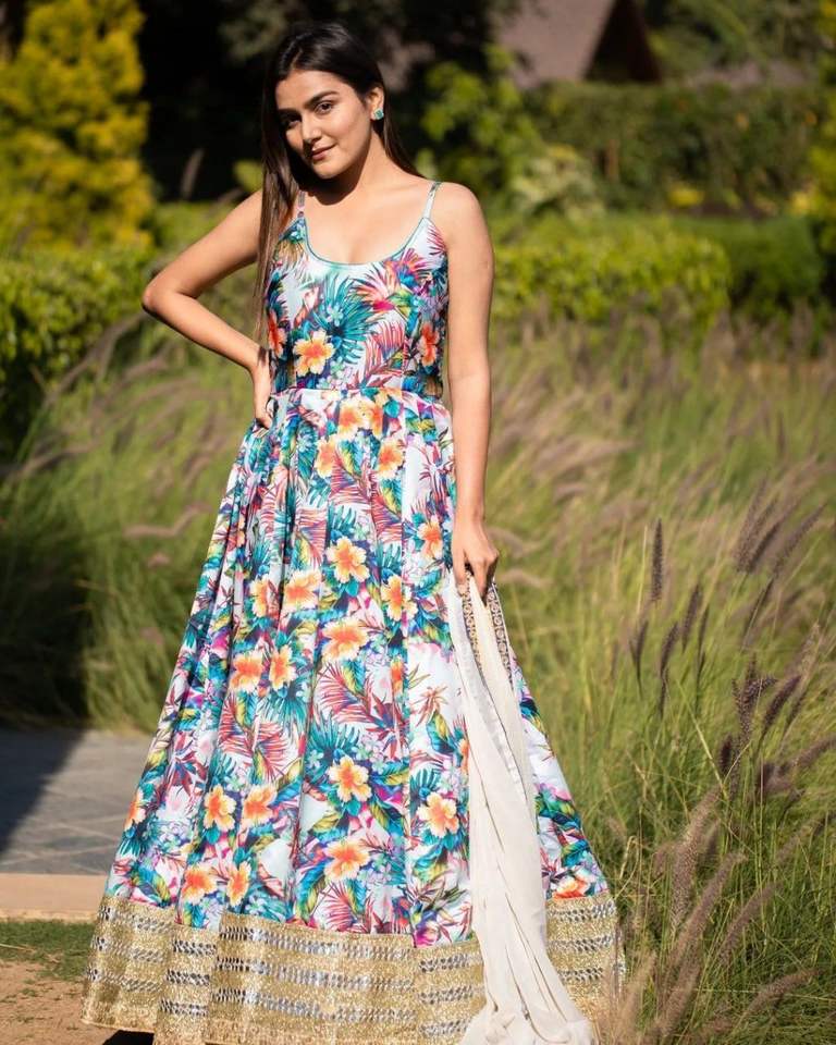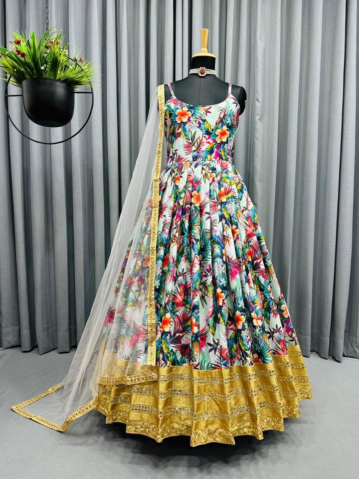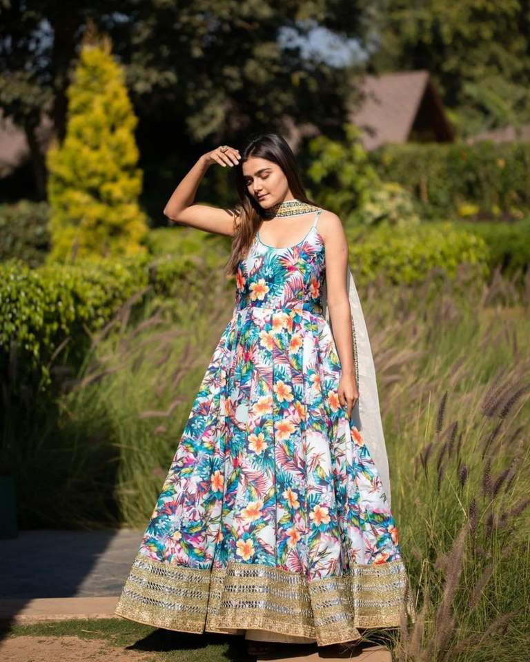 พิมพ์ Anarkali Kurti กับ Dupatta พรรคสวมชุดยาว Anarkali กับนักออกแบบเย็บปักถักร้อยหนัก