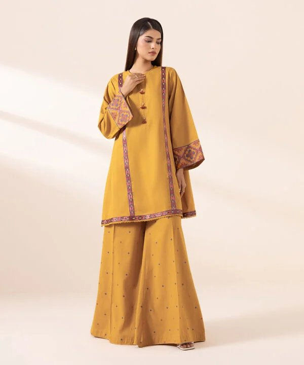 เสื้อสนามหญ้าพิมพ์ลายอาหรับสำหรับผู้หญิงเสื้อผ้าลำลองสไตล์เคอร์ติสใส่สบายออกแบบได้ตามต้องการทันสมัยคอลเลกชั่นล่าสุดของปากีสถานอินเดีย