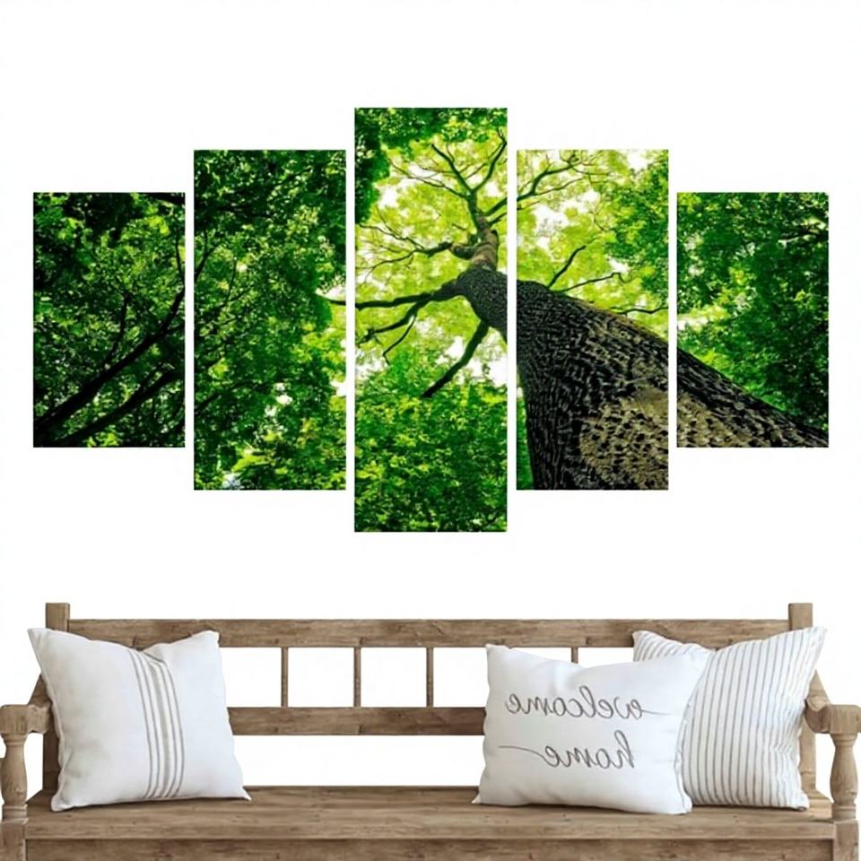 ภาพพิมพ์แคนวาสลายอาร์ตเดโค ชุดภาพวิวต้นไม้สีเขียว 5 ชิ้น แบบผสมผสาน สำหรับตกแต่งผนัง
