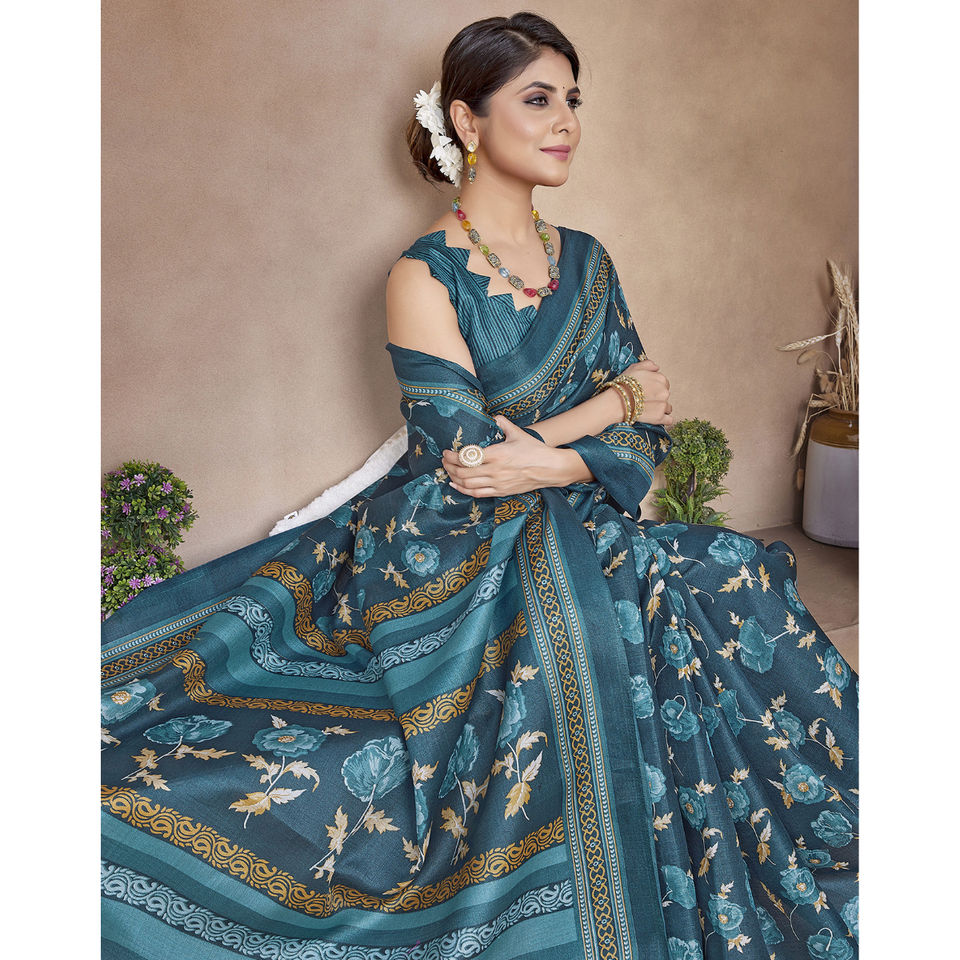 ส่าหรีผ้าไหมพิมพ์ลายศิลปะสำหรับผู้หญิงชุดส่าหรีแบบลำลอง Yashika พร้อมเสื้อเบลาส์ | สวมใส่สบายและมีสไตล์ทุกวัน