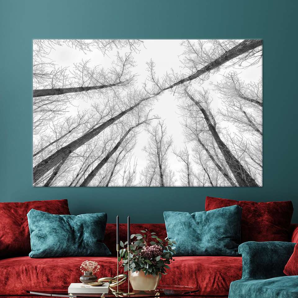 พิมพ์สีดำและสีขาวต้นไม้สูงภูมิทัศน์ผ้าใบงานศิลปะ, 1P: แกลเลอรี่ห่อ