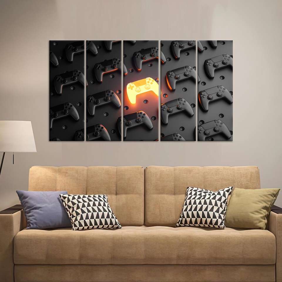 ภาพพิมพ์บนผ้าแคนวาส: งานศิลปะรูปคอนโทรลเลอร์เกม 3 มิติ สำหรับตกแต่งห้องเกมเมอร์ ชุดผ้าแคนวาส 5 ผืน